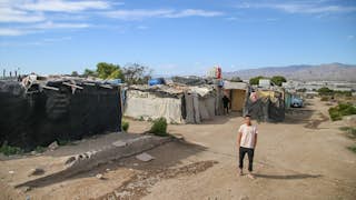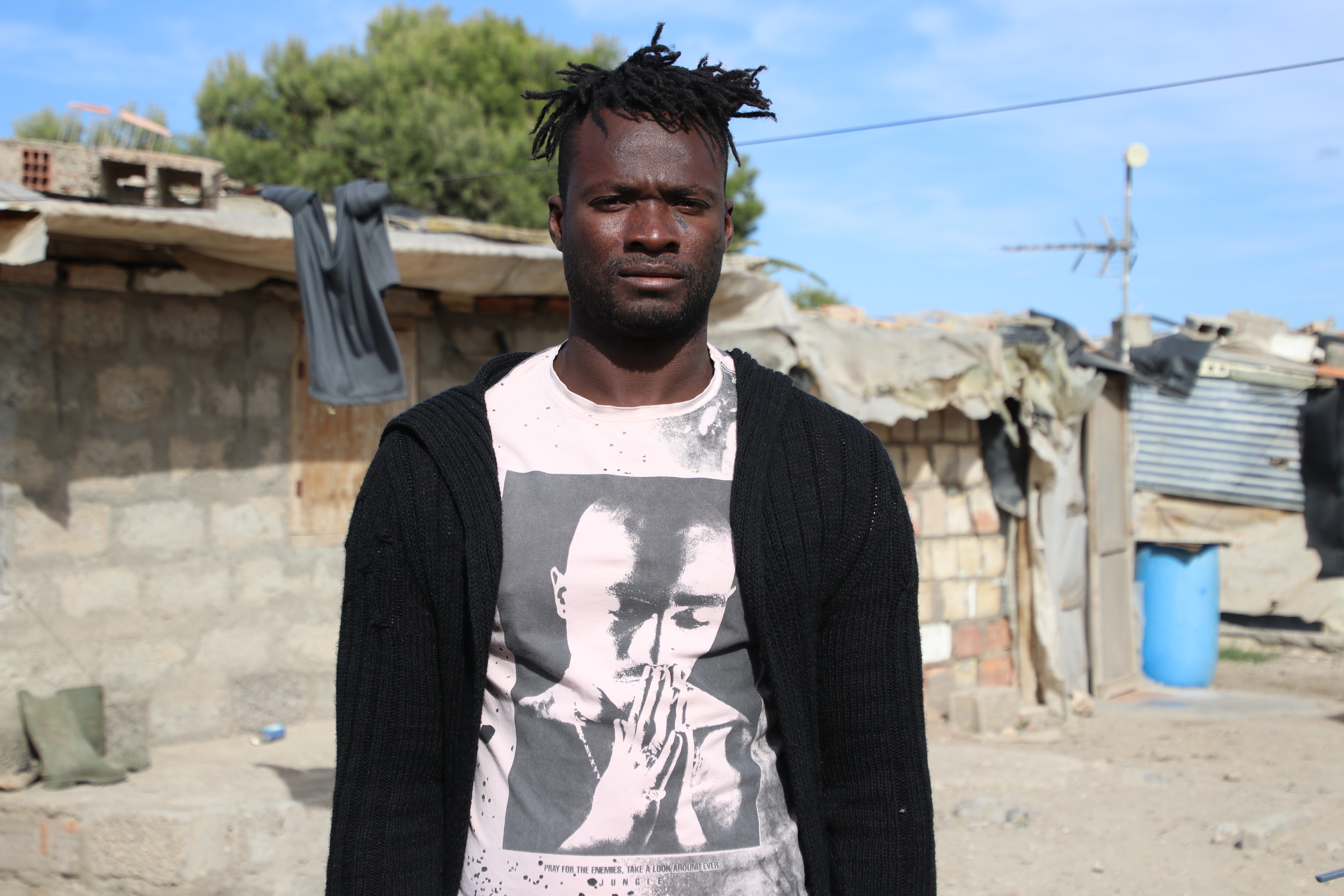 En halvtimes kjøretur utenfor Almería sentrum ligger migrantbosettingen. Drivhusene ligger fortsatt tett i tett. Midt på en slette, i en svak helling opp mot fjellkjeden bak, ligger bosettingen. Byggene er laget av restematerialer fra området. Mye plast, litt trevirke og litt betong.