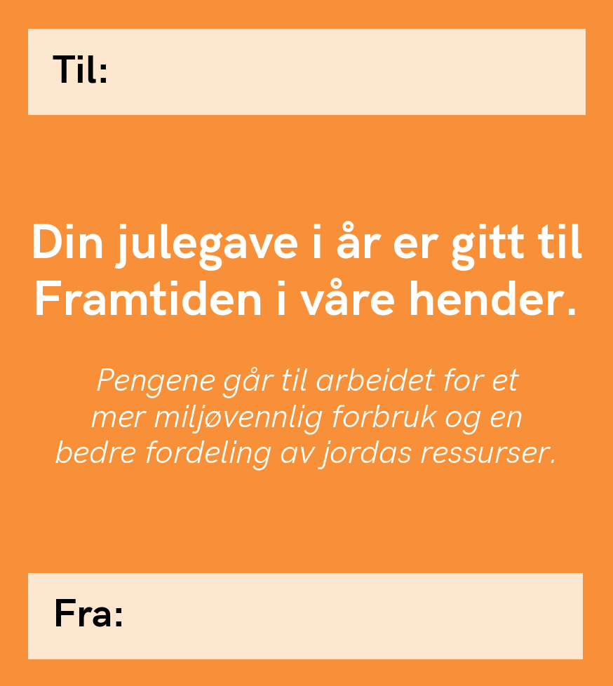 - Vil du ha en fysisk gave i tillegg kan du laste ned gavekort under eller fylle ut skjemaet under og vi sender deg gavekortet i posten.