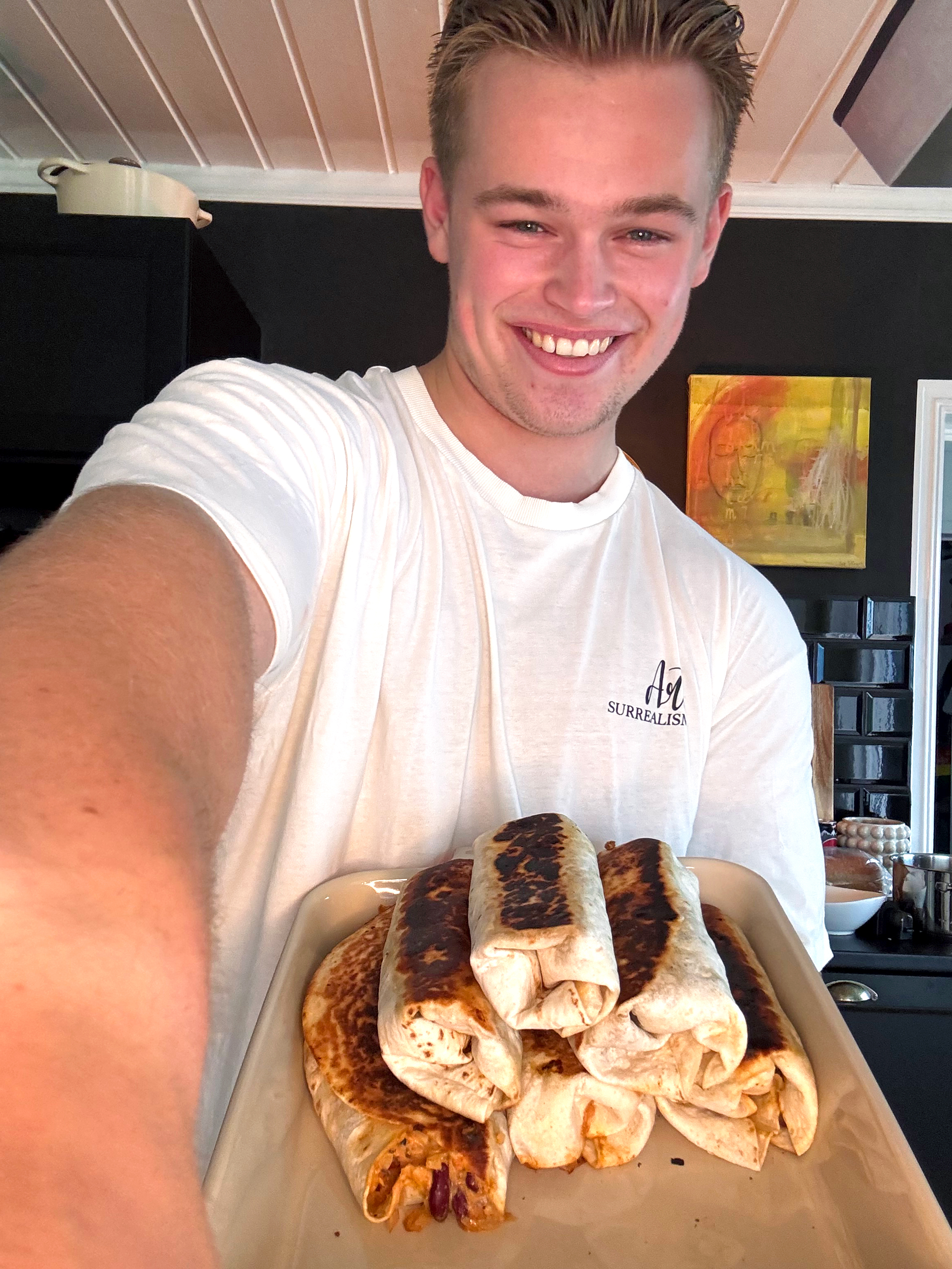 4. Gjør så klar en stekepanne som skal stå på middels/høy varme, her skal de sammenrullede burritosene stekes.