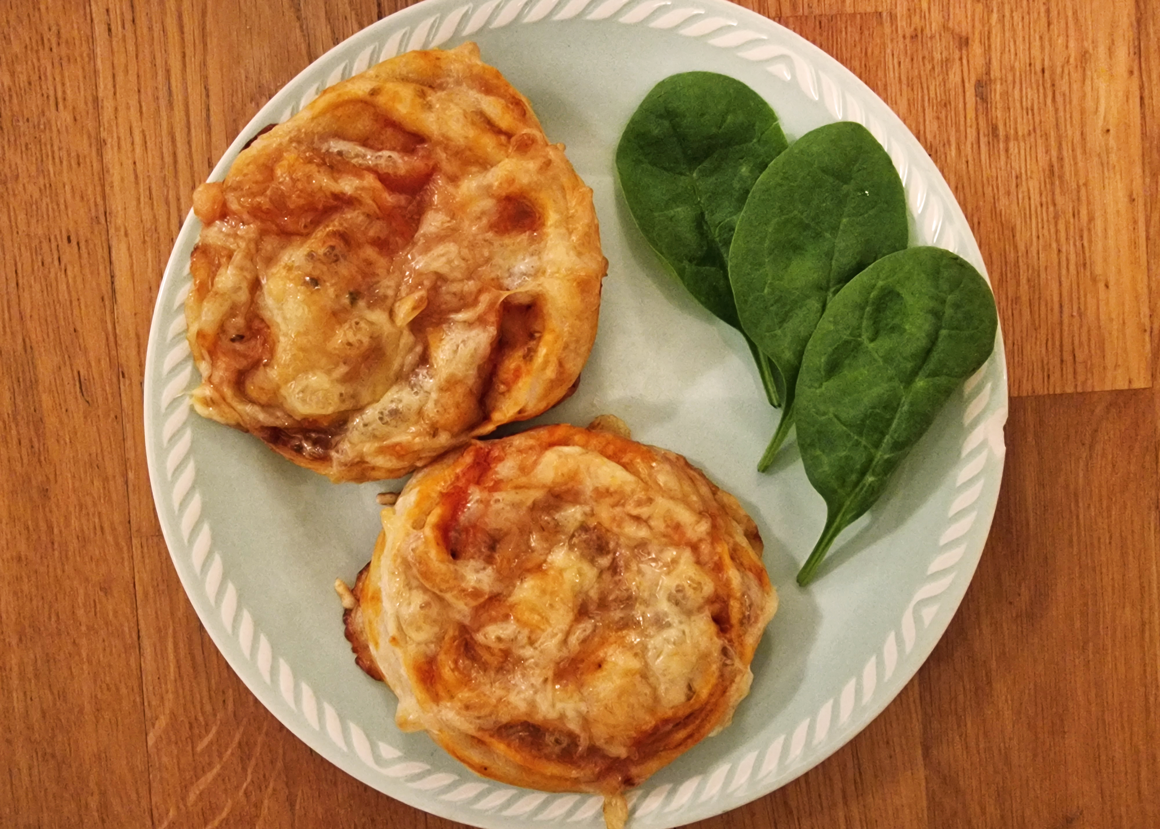 7. Rull sammen leiven som en rullekake og del opp i skiver. Legg dem på et stekebrett med bakepapir.