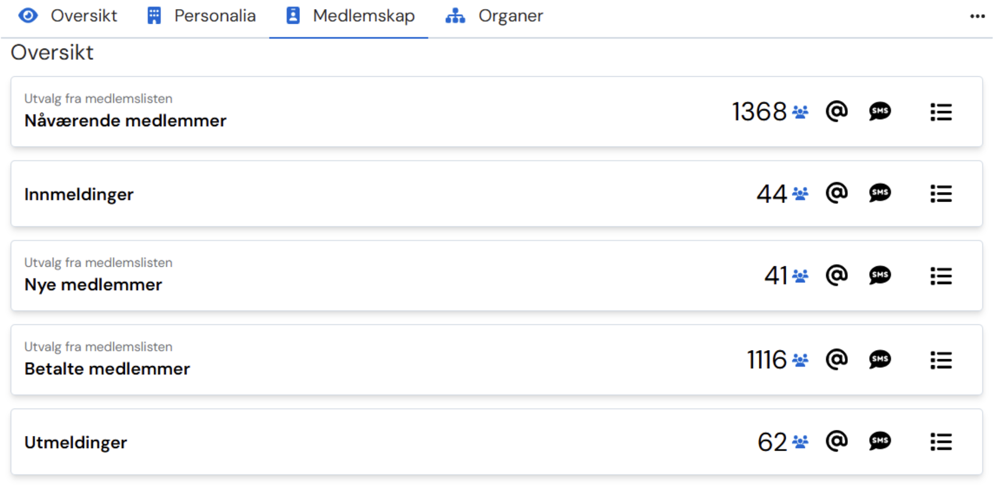 Gå til fanen «medlemskap». Da får du opp denne oversikten: